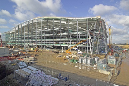 ، ترمینال ۵ فرودگاه Heathrow میباشد. در روز افتتاحیه، 28 مارس 2008،«سیستم حمل و نقل چمدان» از کار افتاد و تقریباً 300 پرواز داخل و خارج از فرودگاه هیترو در پنج روز اول لغو شد. یعنی 36584 مسافر این وضعیت را تجربه کردند.در ۳۰ مارس ۲۰۰۸، Jonathan Russell در تلگراف نوشت: «فراموش نکنید که تحویل ساختمان 4.3 میلیارد پوندی، بزرگترین سازه تک دهانه در اروپا، به موقع و با بودجه تعیین شده انجام شد، همیشه در انظار عمومی، پروازهای لغو شده و گم شدن چمدان بیشتر به چشم میآید و سروصدا به پا میکند.»