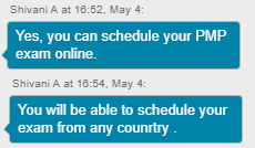 پاسخ مرکز آزمون پیرسون (pearson vue ): الان بررسی می کنم. بررسی کردم .شما می توانید از ایران آزمون آنلاین PMP را بدهید